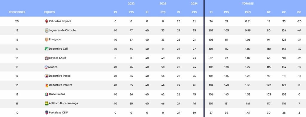 Pensando en el descenso Mientras Millonarios quiere ganar para subir en la tabla de posiciones, Patriotas busca la victoria para escapar del descenso, en el que se encuentra último en la tabla de promedios y muy complicado para salir de la zona roja. Así va la tabla del descenso, antes del encuentro entre Millonarios y […]